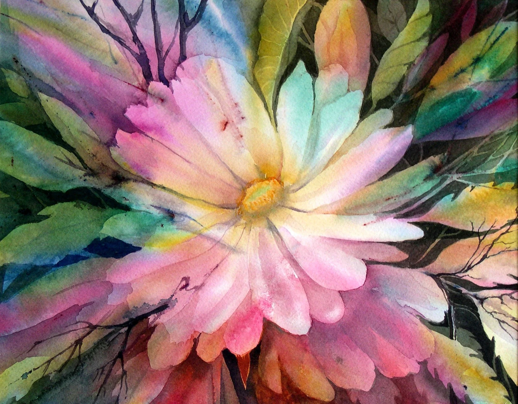 To understand the use of negative paintings, here is blossom I put a light wash on paper. When dry, use a slightly darker shade of the same mix and paint around the first row of petals not over them. I let the paint dry and follow again with a darker shade for row three. I kept going until the edge of the paper comes and watch your flower bloom!