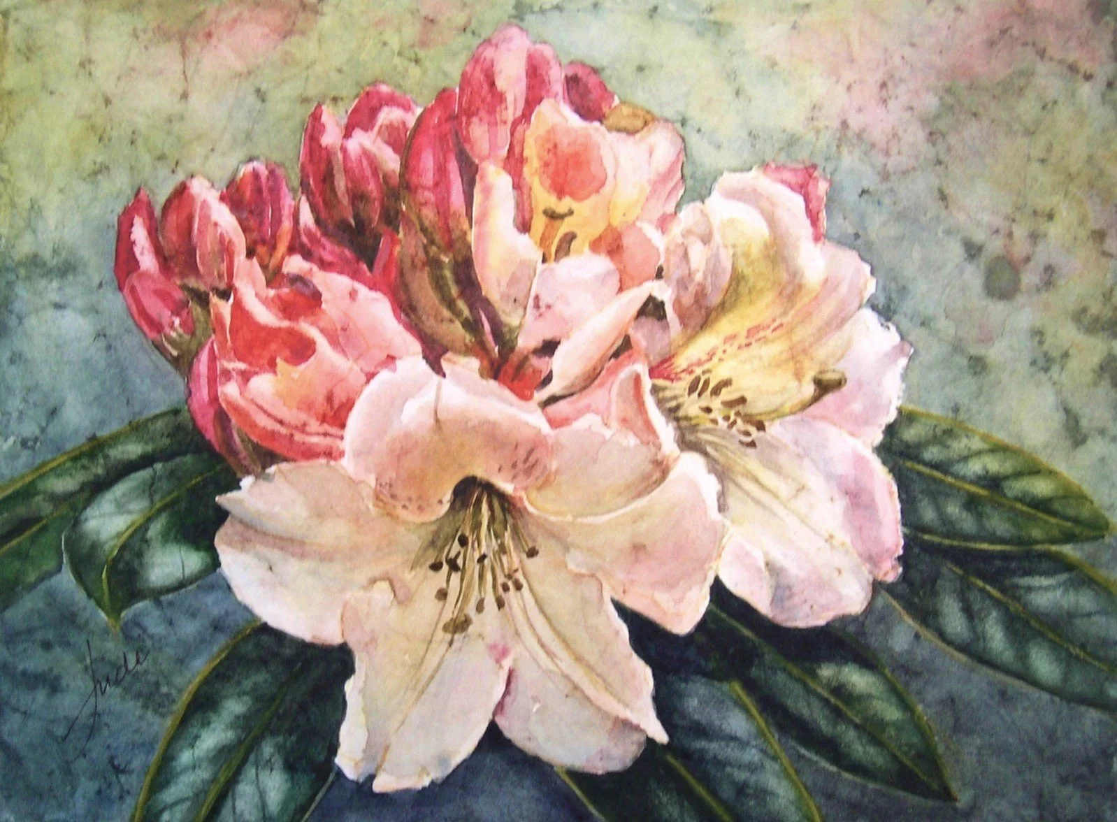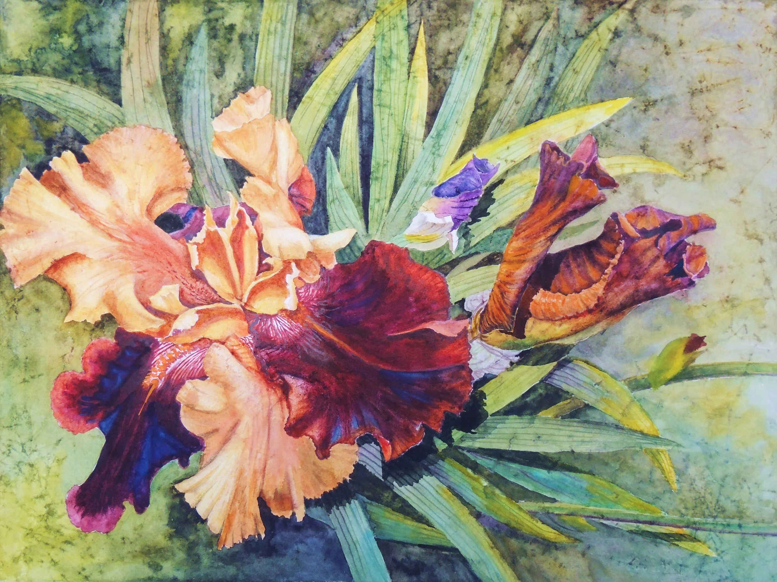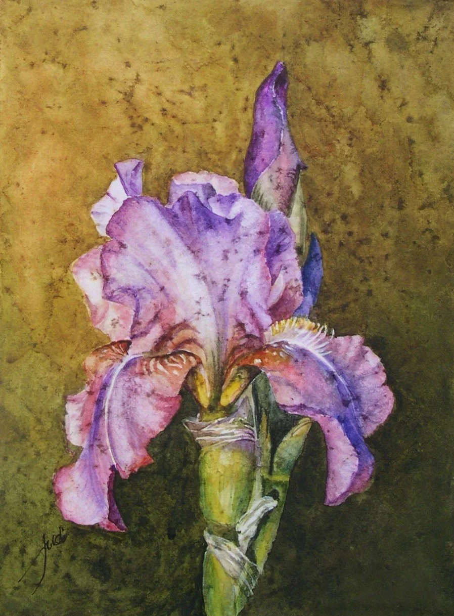 I share a love of plants and gardens with many of my students and we exchange them too. Elaine brought this enchanting iris to me and I enjoy it every spring. How many shades of pink, lilac, mauve, purple and gold can you find?