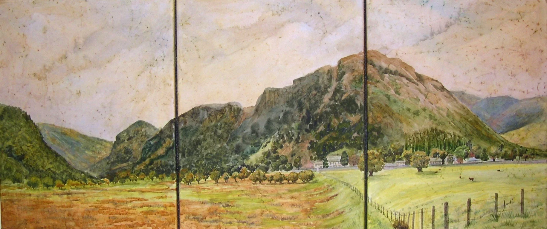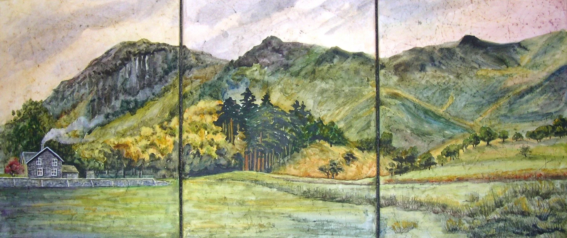 On a brief visit to the English Lake District, I was thrilled with the fells which seem to wrap and weave around eachother. The views and colors changing with the amount of sun or shade. A walk through the village of Grange near Keswick brings you to this wonderful scene.