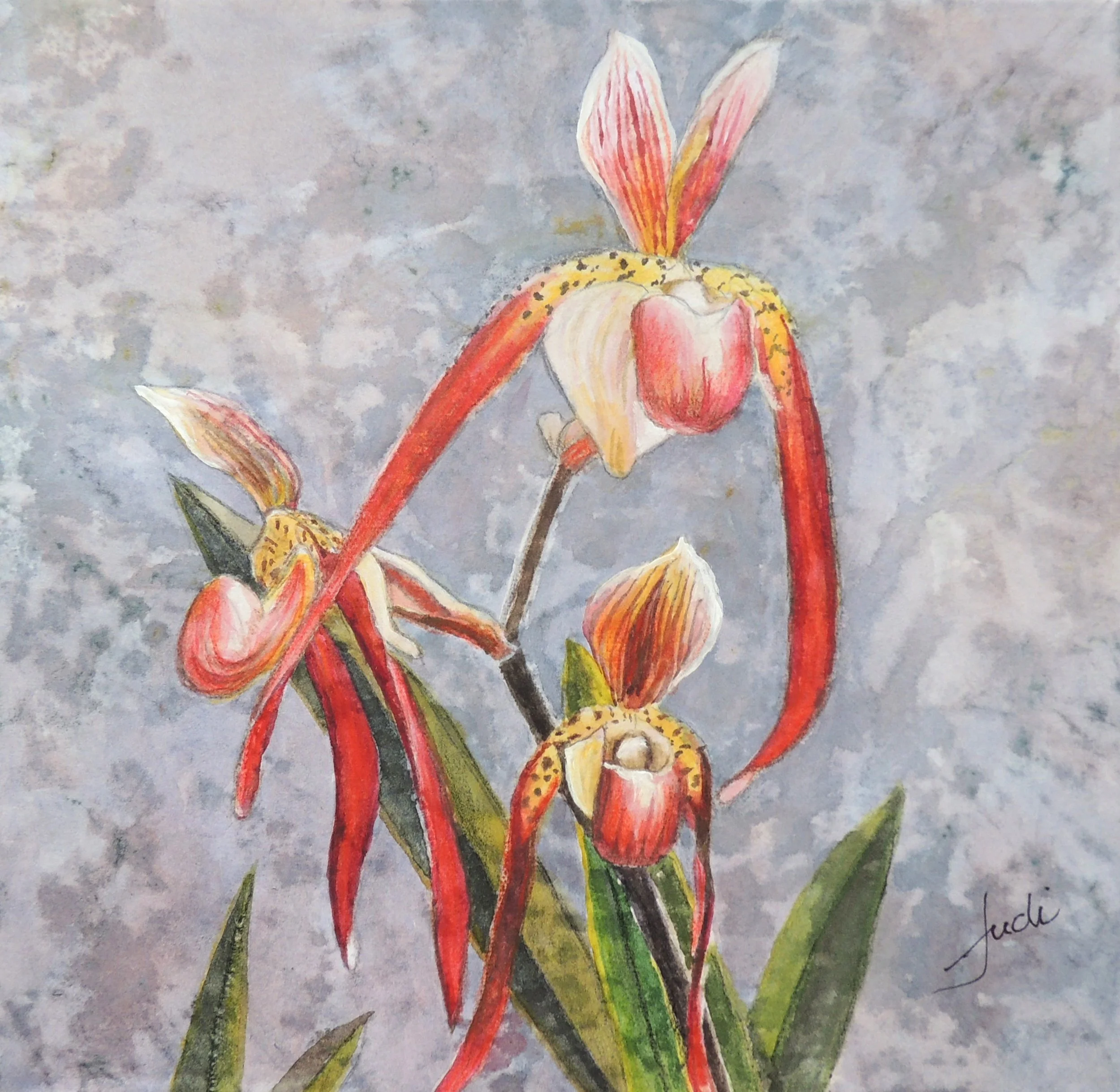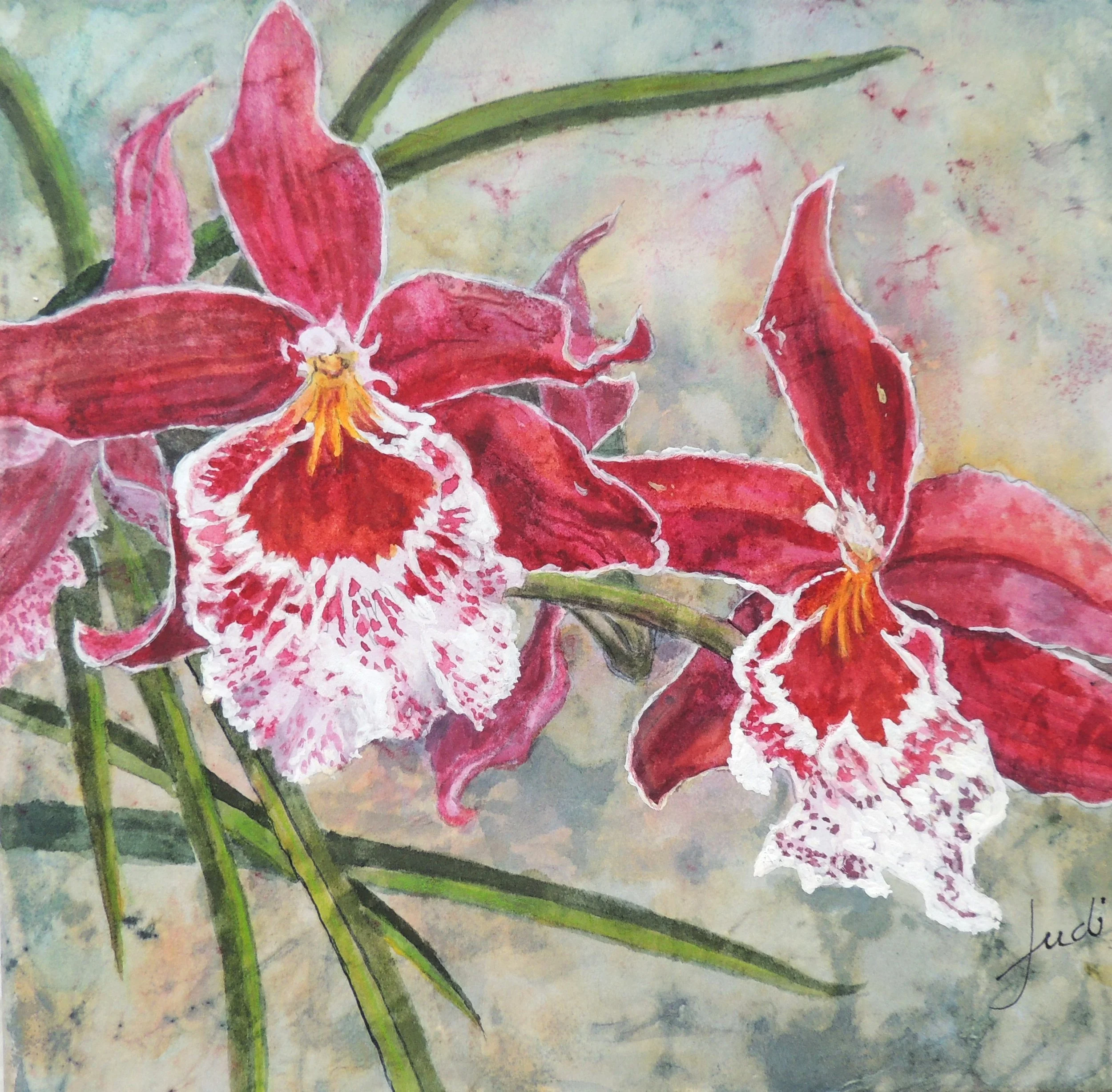 Masa Paper on Canvas - This technique follows preparing and painting Masa Paper but instead of framing I attached the finished image to a blank framed canvas. The Masa paper needs to be cut to wrap around the canvas, using glue diluted with a small amount of water which covers the canvas, placed down on carefully laid out image. No creases allowed! This idea, which was a personal idea and choice, works well. It reduces the framing cost, is lighter and much easier to pack/handle and can therefore appeal. I use front-load plain black (or white) frames. The images are sprayed several times with Krylon Clear Satin spray to protect them, instead of using glass.